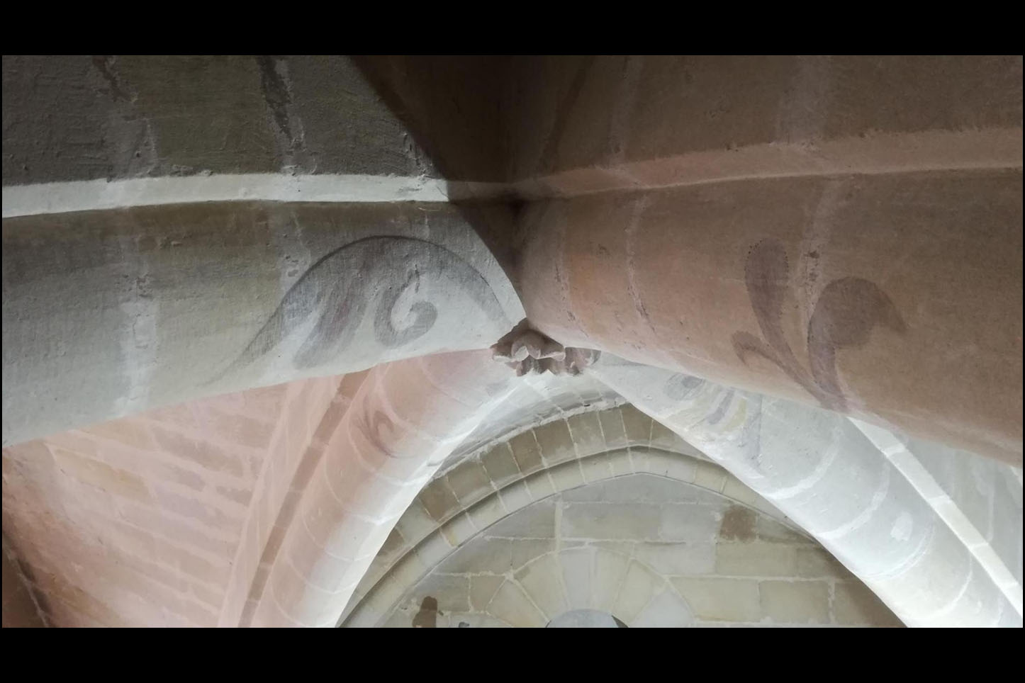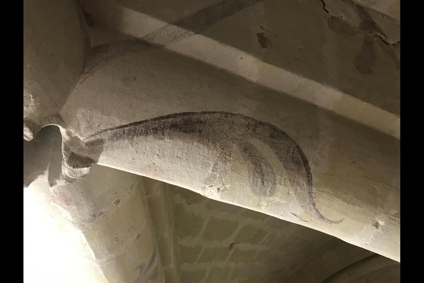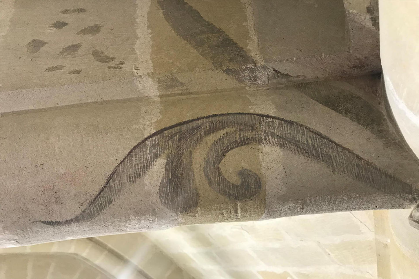 – sous le contrôle de l’Architecte des bâtiments de France, reprise des fresques, badigeons et enduits, nettoyage des voûtes avec restitution des décors polychromiques.